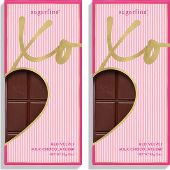Give yourself or a special someone the gift of sweetness with this duo set of artisan milk-chocolate bars filled with a rich red velvet–flavored center, bringing the classic dessert to life in every bite.
