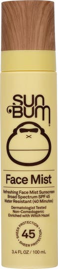 Our refreshing SPF 45 Sunscreen Face Mist is our daily go-to for sheer, lightweight protection from the sun. Shake well before use. Spray container liberally into palm and apply evenly to face and neck 15 minutes before sun exposure. Reapply after 40 minutes of swimming or sweating and immediately after towel drying. Broad Spectrum Protection, Water Resistant (40 Minutes), Sun Bum® Original Scent, Dermatologist Tested, Non-Comedogenic, Oxybenzone Free, Oxtinoxate Free, Paraben Free, Gluten Free, Vegan.