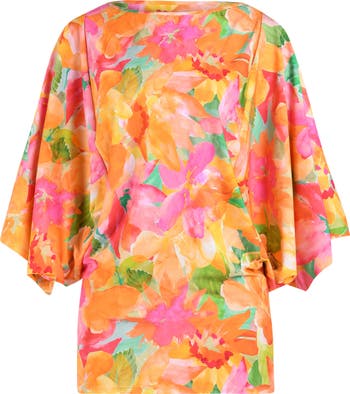 Make your way from resort to beach in a cover-up minidress patterned in vibrant watercolor blooms.