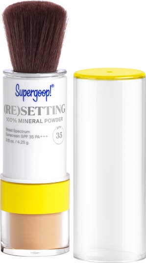 How to use: Remove the cap, slide down the clear plastic sleeve and remove the yellow pin from the center of the brush. Twist the body of the brush from the 'closed' position to the 'open' position. Tilt and tap the brush gently against your wrist until you see the powder start to flow through the bristles. Use the powder generously to reapply your UV protection. To close, twist the body of the brush again so it reads 'closed'. Apply generously and evenly 15 minutes before sun exposure. Reapply at least every two hours, and use a water-resistant sunscreen if swimming or sweating.