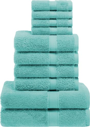 Create a spa-like feel in your bathroom with this ten-piece towel set made from Egyptian-cotton terry that's plush, durable and highly absorbent.