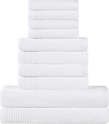 - Set includes two bath towels, four hand towels and four washcloths