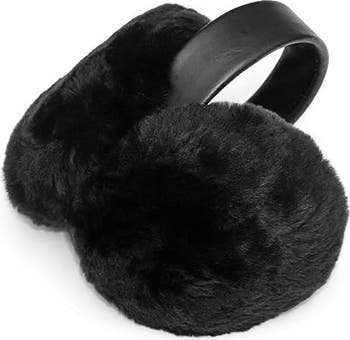 Keep your ears toasty with chic earmuffs featuring a leather headband and fluffy genuine shearling ears.