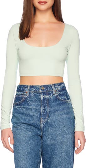 Every closet craves this anything-but-basic top updated with a deeply scooped neckline and a cool cropped fit.