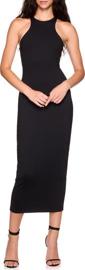 Designed with a sporty high neck and racerback, this stretchy maxi dress features a fitted, tube-style silhouette.