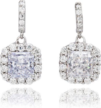 Asscher Cut White Cubic Zirconia Drop Earrings