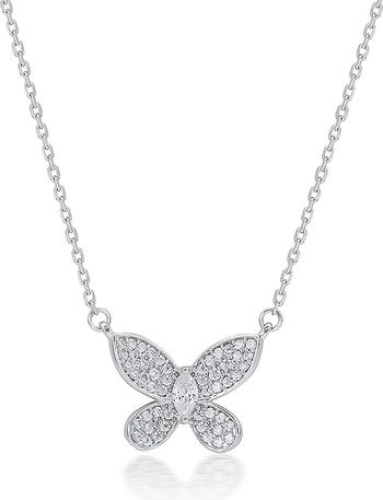 Cubic Zirconia Butterfly Pavé Pendant Necklace