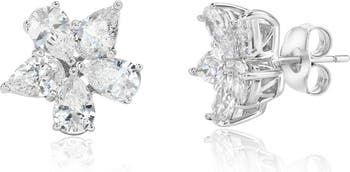 Glittering cubic zirconia flower cluster studs bring a touch of whimsy to your lobe look.