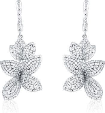 Pretty flower-shaped drops illuminated by cubic zirconia detail these polished earrings crafted from sterling silver.