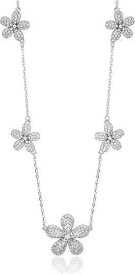 Cubic Zirconia Flower Pavé Station Necklace