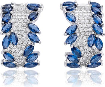 Show off these glamorous huggie-hoop earrings featuring sparkly pavé white cubic zirconia rivers framed by colorful marquise-cut cubic zirconia.