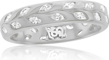 Sparkly marquise-cut cubic zirconia illuminate this leaf-textured band ring crafted from sterling silver for elegant shine.