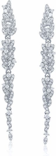Prong-set round cubic zirconia illuminate these striking linear drop earrings crafted from polished sterling silver.