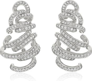 Dainty round cubic zirconia trace the ribbon-like swirls of these sculptural drop earrings that transform your looks with extraordinary sparkle.