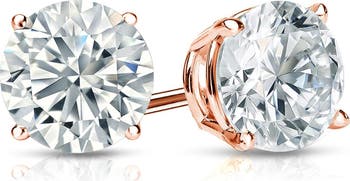 Round-cut white cubic zirconia stones deliver more than a brilliant shine to stunning stud earrings finessed in fine sterling silver.