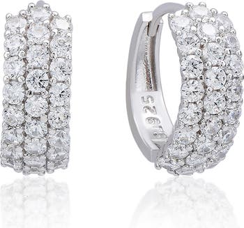 Cubic Zirconia Triple Row Huggie Hoop Earrings