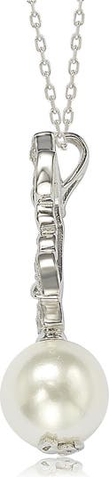 A sterling-silver necklace features a butterfly-shaped pendant set with a cultured freshwater pearl and round-cut cubic-zirconia crystals.