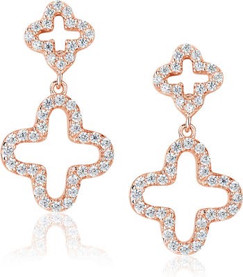 - - Rose gold plated sterling silver prong set round-cut CZ accented clover shaped drop earrings - Post back - Approx. 2.3 cm - Imported