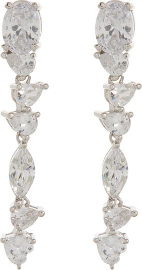 Mixed shaped of luminous cubic zirconia dangle elegantly on these linear drop earrings crafted from gleaming sterling silver.