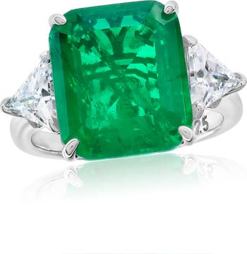 A stunning rectangular cubic zirconia and white trillion-cut cubic zirconia enrich this glamorous statement ring crafted from polished sterling silver.