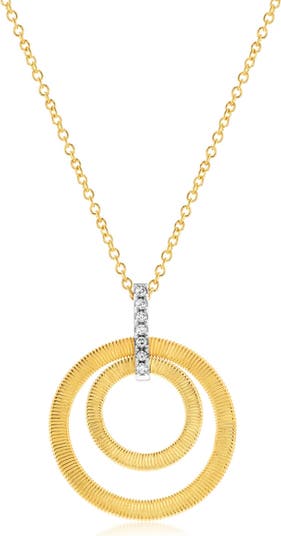 Elevate your daytime or evening ensembles with this dainty chain necklace boasting a large double-circle pendant in a textured-rib design.