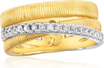 Instantly create a stacked look on your finger with this triple-coil ring done in a two-toned finish and featuring a slender pavé band.