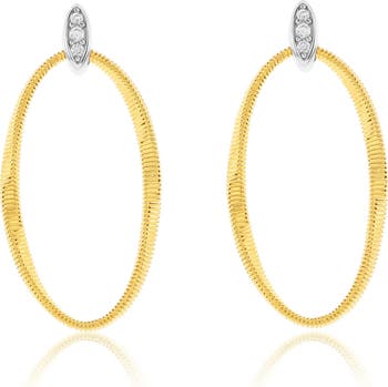 Add a brilliant shine to your lobes with these drop earrings featuring textured hoops and cubic zirconia studs.