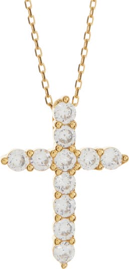 Goldtone Plated Sterling Silver White Cubic Zirconia Cross Pendant Necklace