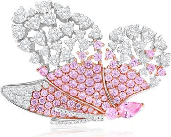 • SUZY LEVIAN Rose-Tone Sterling Silver Prong Set Cushion Shape Pave CZ Ring