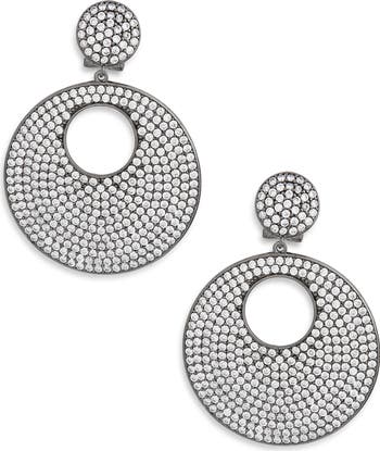 Pavé cubic zirconia shine from captivating circle-drop earrings crafted from sterling silver with a polished black finish.