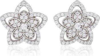 Show off nature-inspired sparkle with these charming floral stud earrings crafted from sterling silver and illuminated by pavé cubic zirconia.