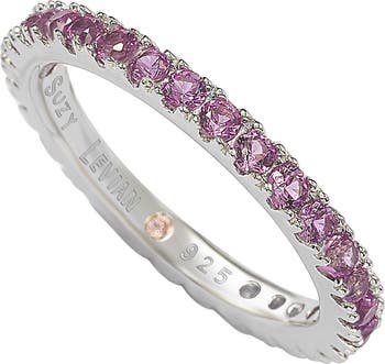 Bright pink CZs add a vintage sparkle to this eternity band ring set in sterling silver to complete a dainty look.