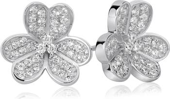 Pavé cubic zirconia add brilliant sparkle to these sterling silver stud earrings in a romantic floral silhouette.