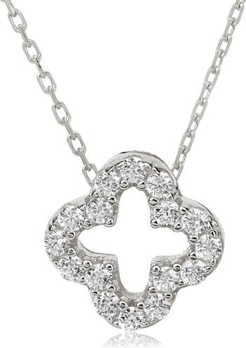 Sparling CZ gems embellish the clover-shaped pendant of this sterling silver necklace.