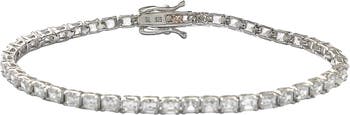 A single row of stunning faceted CZ stones sparkle in a polished sterling silver setting to make a memorable gift.