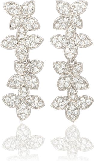Sterling Silver Pavé Cubic Zirconia Floral Drop Earrings