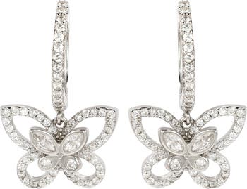 Pavé CZ brings elegant sparkle to these sterling silver drop earrings crafted in a charming butterfly silhouette.