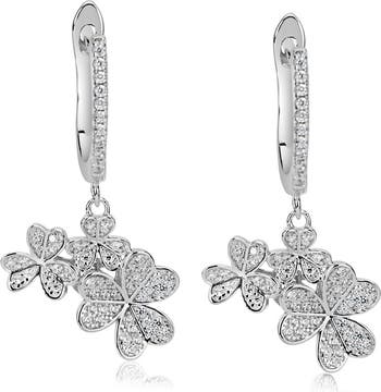 Sterling Silver Pavé CZ Cluster Clover Drop Earrings