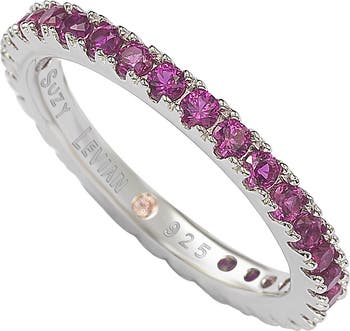 Pave CZ adds a vintage sparkle to this slim, eternity band ring set in sterling silver to complete a dainty look.