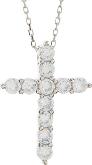 Sterling Silver White Cubic Zirconia Cross Pendant Necklace