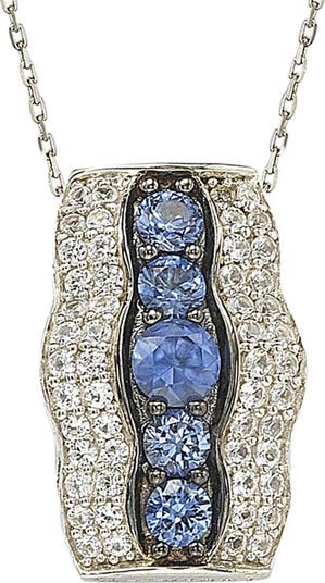 Sparkling blue or pink sapphires enrich a curvy pendant necklace crafted from polished sterling silver with goldtone or black-plated details.