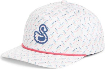 Neatly patterned golf clubs bring colorful energy to a six-panel golf hat made with lots of stretch and a shady bill to help you focus on your game.