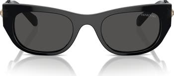 A trio of round crystals brings signature Swarovski sparkle to the temples of these sleek, Italian-crafted sunglasses done in a retro silhouette.