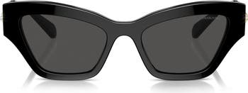 Goldtone settings highlight the prominent crystals dotting the wide temples of these chic cat-eye sunglasses fitted with dark, shading lenses.