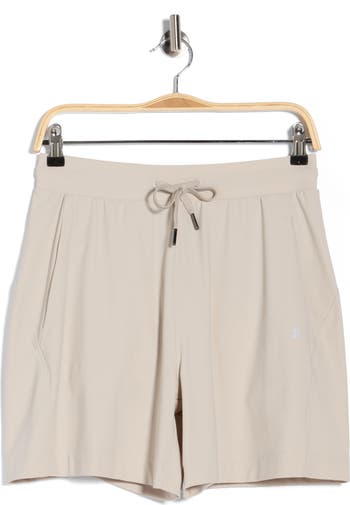 Easily go from the gym to weekend errands in these high-waisted shorts cut from sweat-wicking wrinkle-resistant fabric to keep you dry and comfy.