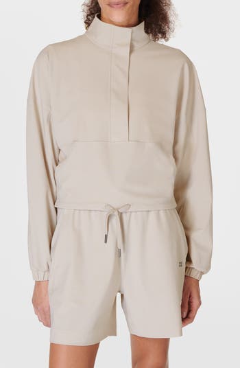 Ideal for a breezy morning run, this super stretchy and lightweight anorak features a covered half-placket and an adjustable drawstring hem.