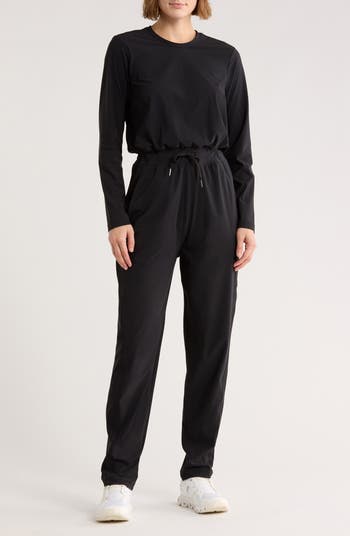 Easily transition from your morning gym sessions to the office in this long-sleeved jumpsuit styled with a drawstring waist.