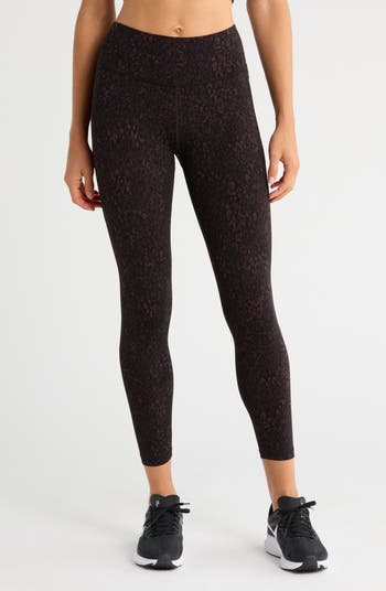 Move easily in these shapely high-waist leggings fashioned with comfy stretch, light compressoin, a subtle print and cool, ankle-grazing hems.