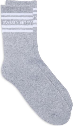 Varsity-inspired stripes and a logo add athletic club charm to these organic cotton-blend crew socks.