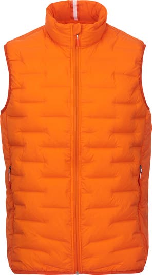 Get ready for the cooler seasons in this down-filled puffer vest signed off by a striped back tab in signature Swims colors.